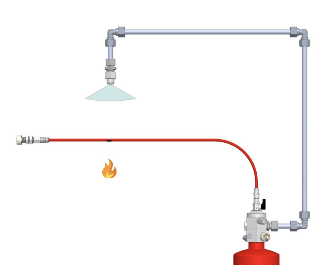 The ILP can also be equipped with BlazeWire instead of the BlazeCut detection tube, using linear heat detection wire attached to an electronic solenoid valve on the storage cylinder to trigger the release of the fire suppressant.