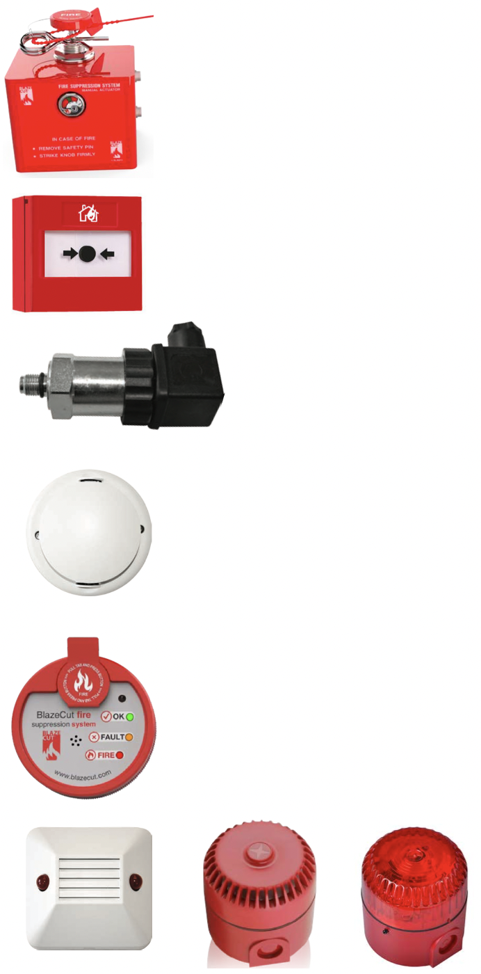 - Pressure switch, to connect to other systems to trigger various functions such as switching off electrical currents or shutting down systems etc