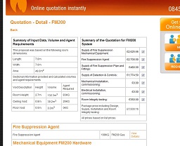 ONLINE fire suppression Quotation tool